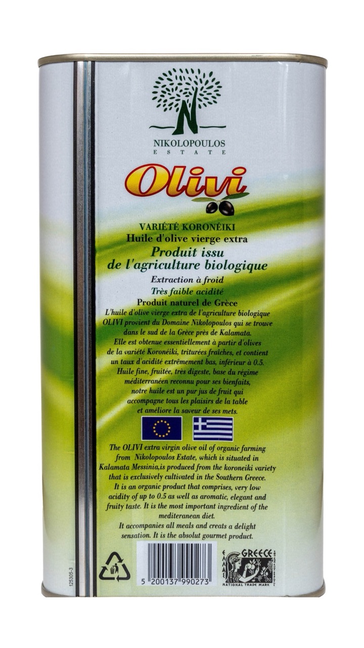 Olivi Bio Natives Olivenöl Extra ist ein Produkt des Familienbetriebs Nikolopoulos Estate aus der Region Kalamata.