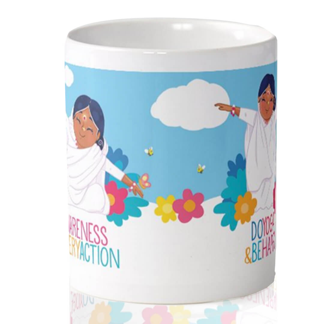 Die Yoga Tasse, besonders für Yogaliebhaber*innen kreiert, weist uns auf zwei wichtige Empfehlungen hin, die Amma uns immer wieder nahelegt: